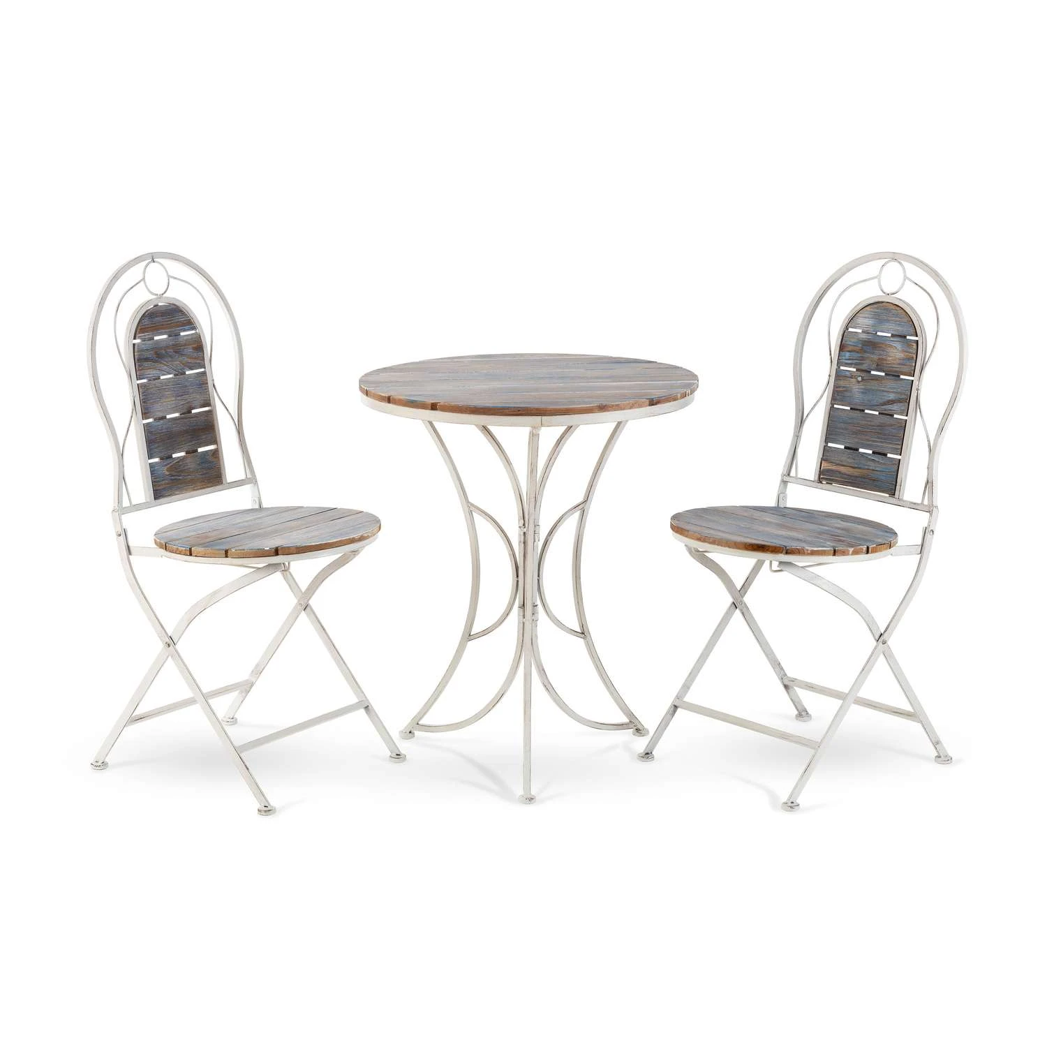 Take a load off and have lunch in the open air on this beautiful bistro set with table and two chairs. Perfect fit in any patio or garden. Sturdily constructed from 100% Steel and foldable for easy transport. Durable made of durable steel and wood planks for years of quality use Easy storage chairs fold for easy storage during the off-season Easy care and cleaning Indoor or outdoor use