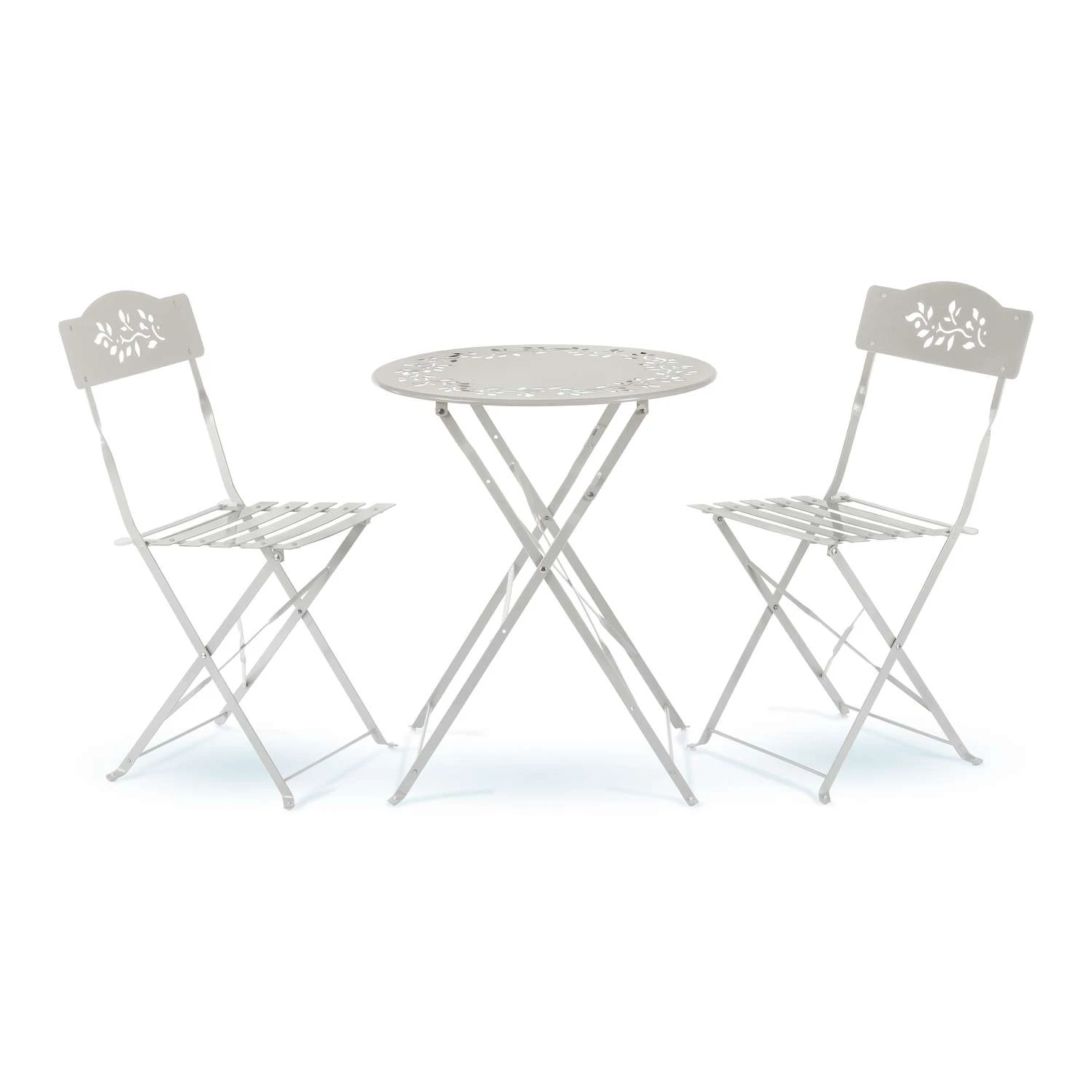 Take a load off and have lunch in the open air on this beautiful bistro set with table and two chairs. Perfect fit in any patio or garden. Sturdily constructed from 100% Steel and foldable for easy transport. Durable made of durable steel and wood planks for years of quality use Easy storage chairs fold for easy storage during the off-season Easy care and cleaning Indoor or outdoor use