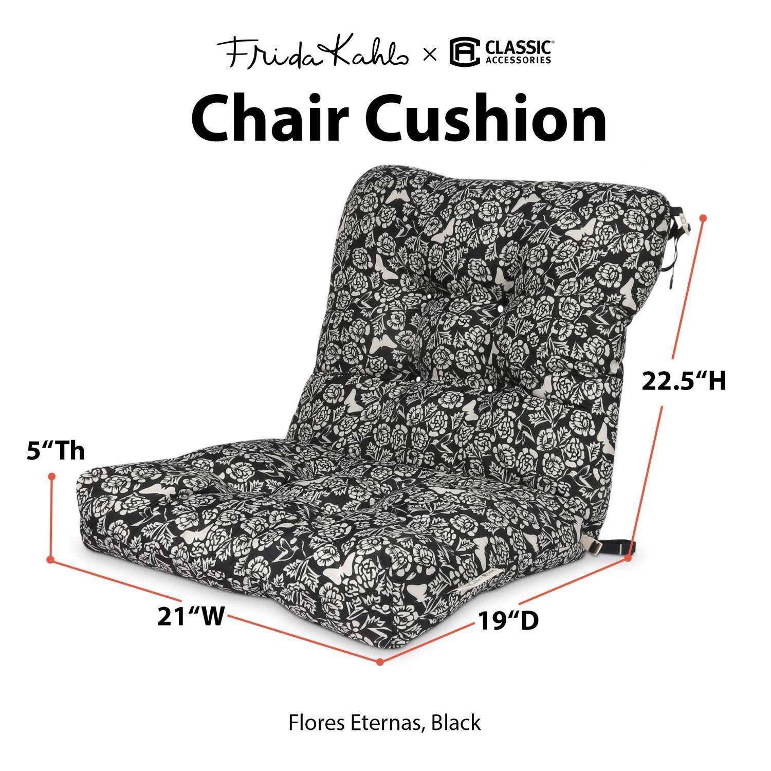 Classic Accessories Frida Kahlo Black/White Flores Eternas Polyester Chair Cushion 22.5 In. H X 19 I