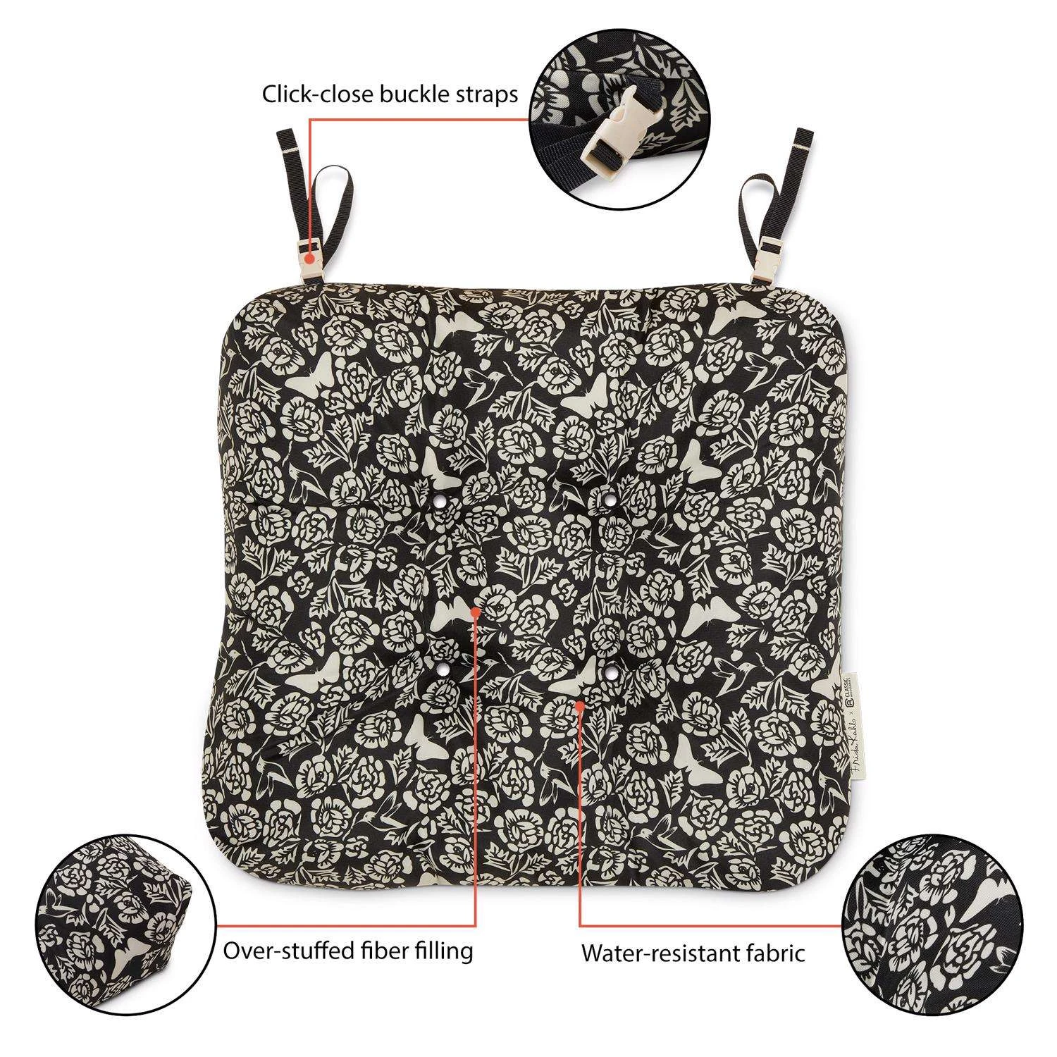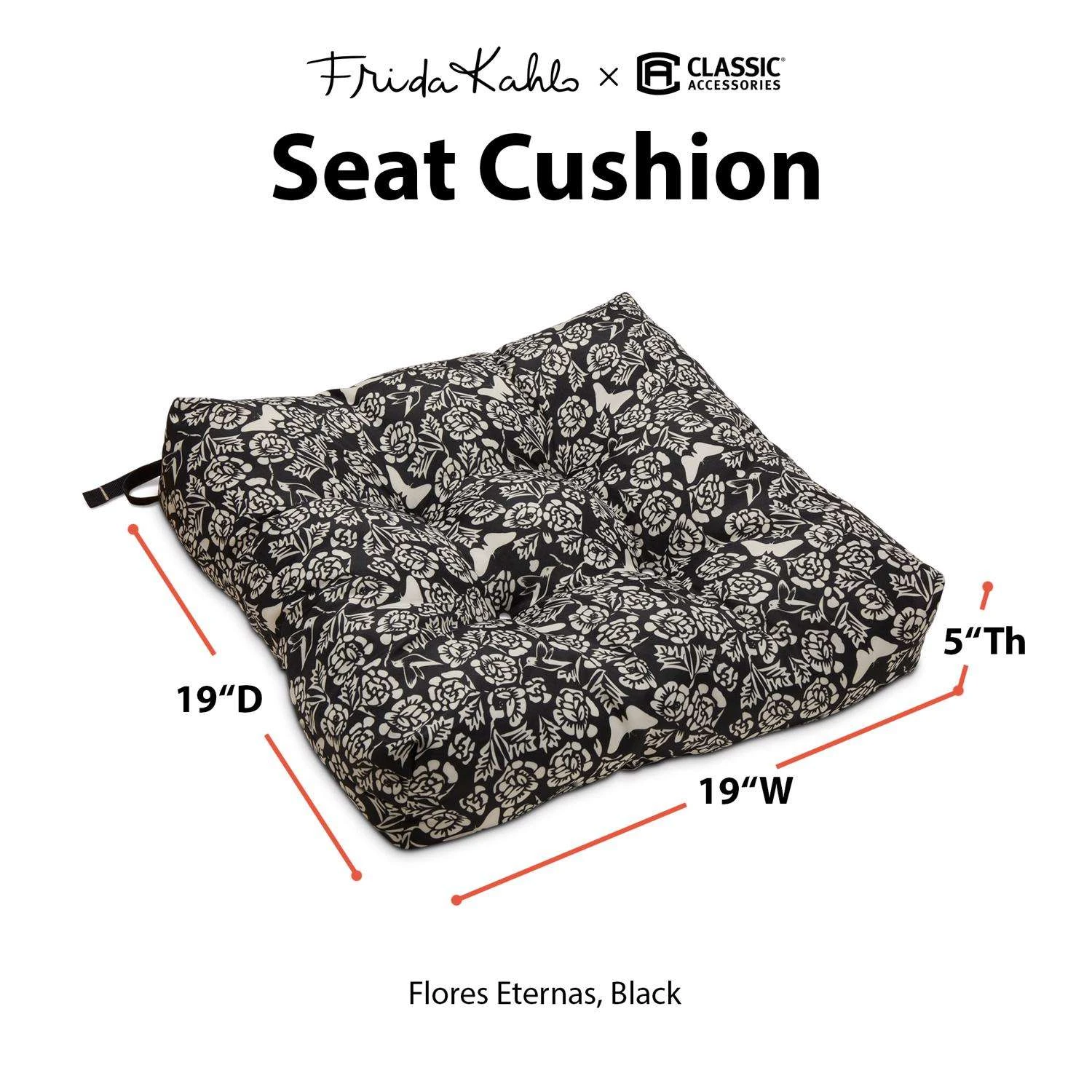 Be the first to review “Classic Accessories Frida Kahlo Black/White Flores Eternas Polyester Chair Cushion 5 In. H X 19 In.” Cancel reply
