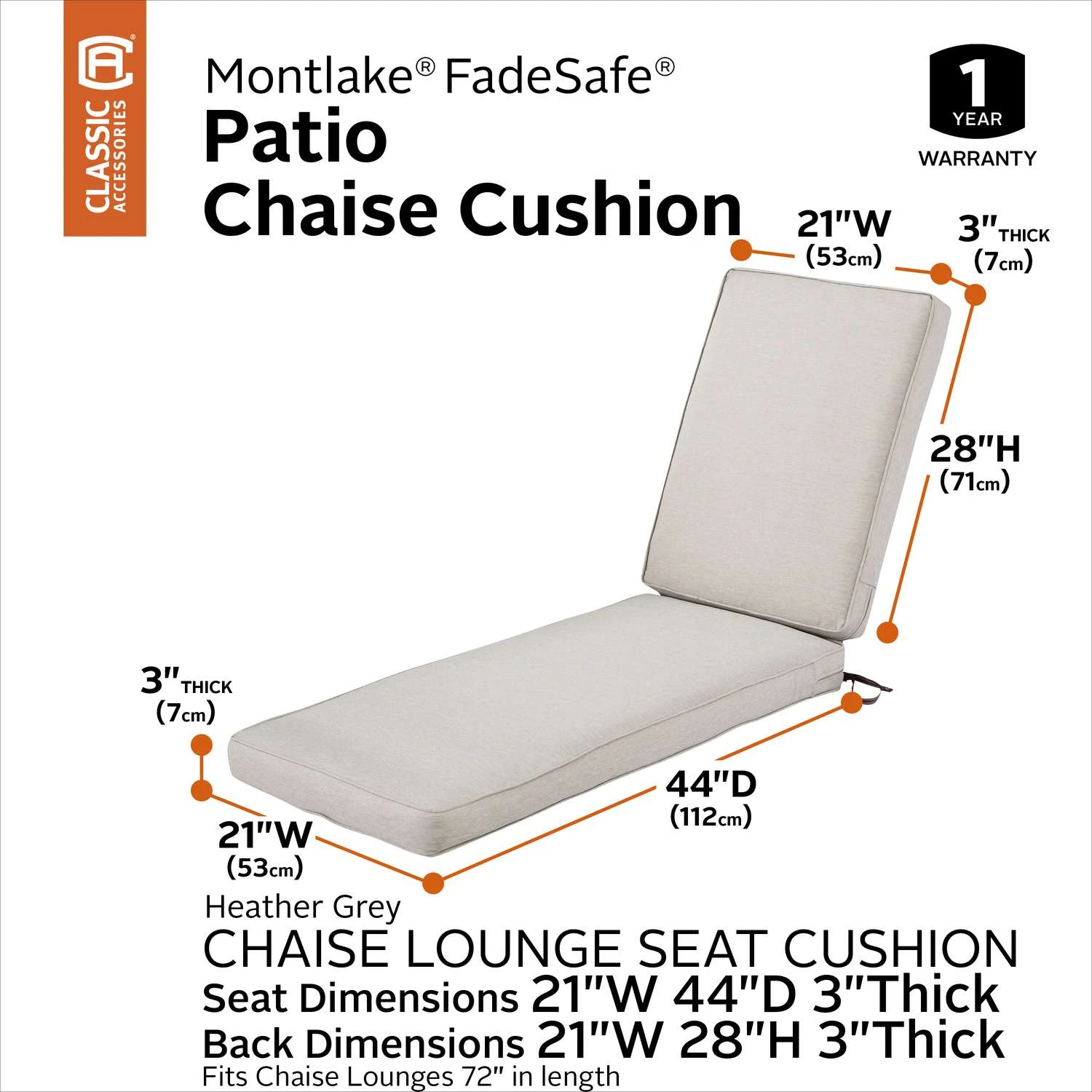 Classic Accessories Montlake Heather Gray Polyester Chaise Cushion 3 In. H X 21 In. W X 72 In. L