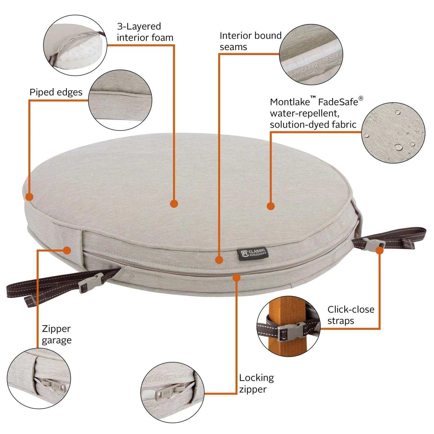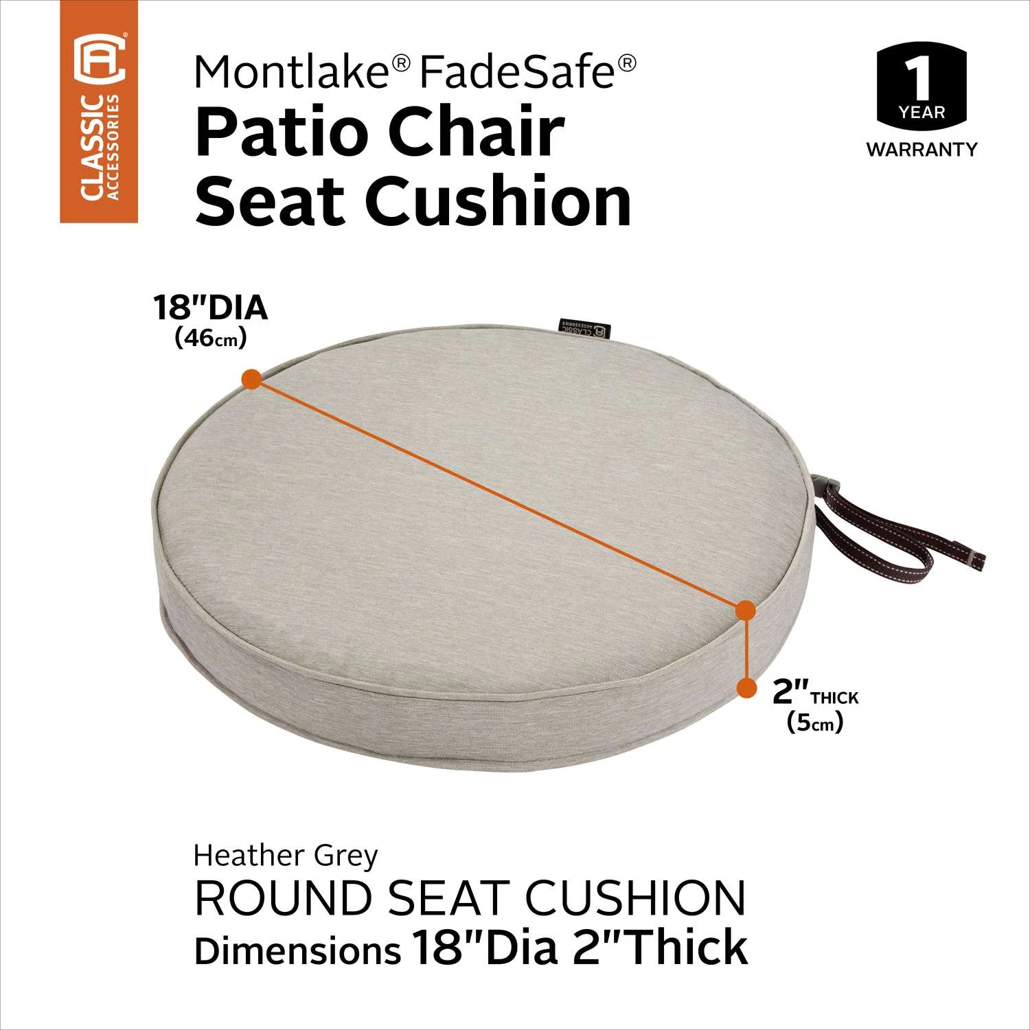 Be the first to review “Classic Accessories Montlake Heather Gray Polyester Seat Cushion 2 In. H X 18 In. W X 18 In. L” Cancel reply