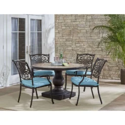 Hanover Monaco 5 Pc Bronze Aluminum High Dining Fire Pit Set