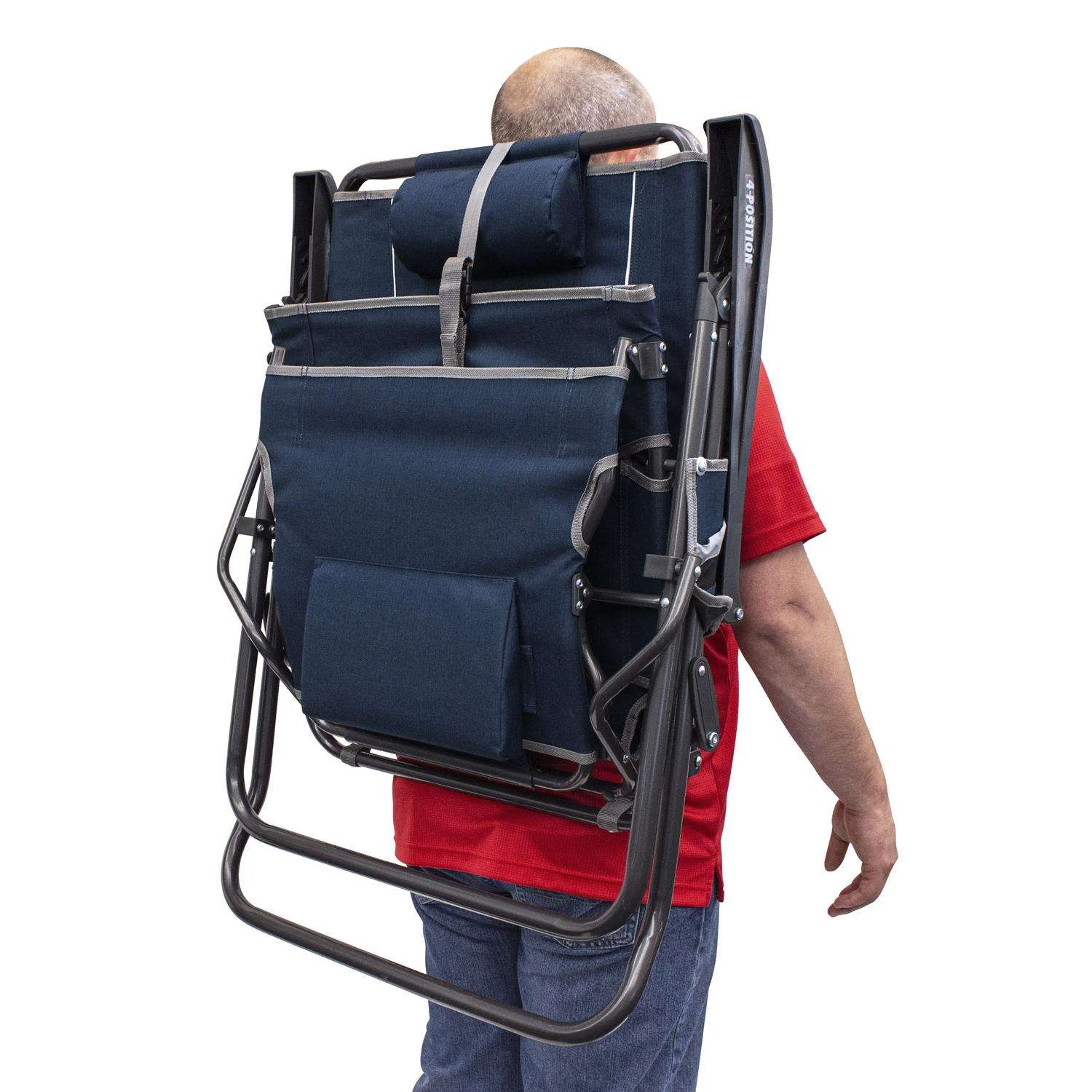 GCI Outdoor Legz Up Lounger Multi-Position Heathered Indigo Beach Folding Lounger