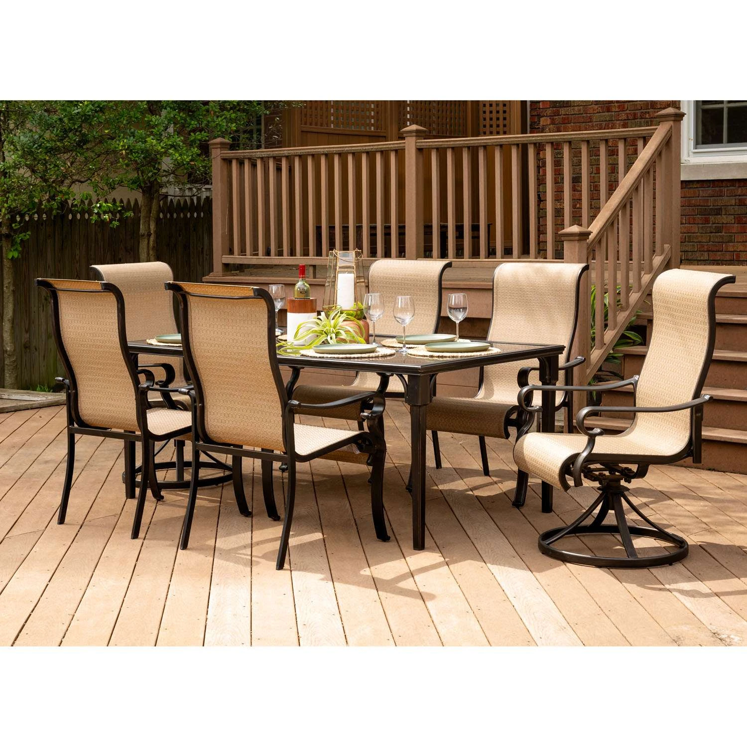 Hanover Brigantine 7 Pc Espresso Aluminum Transitional Dining Set