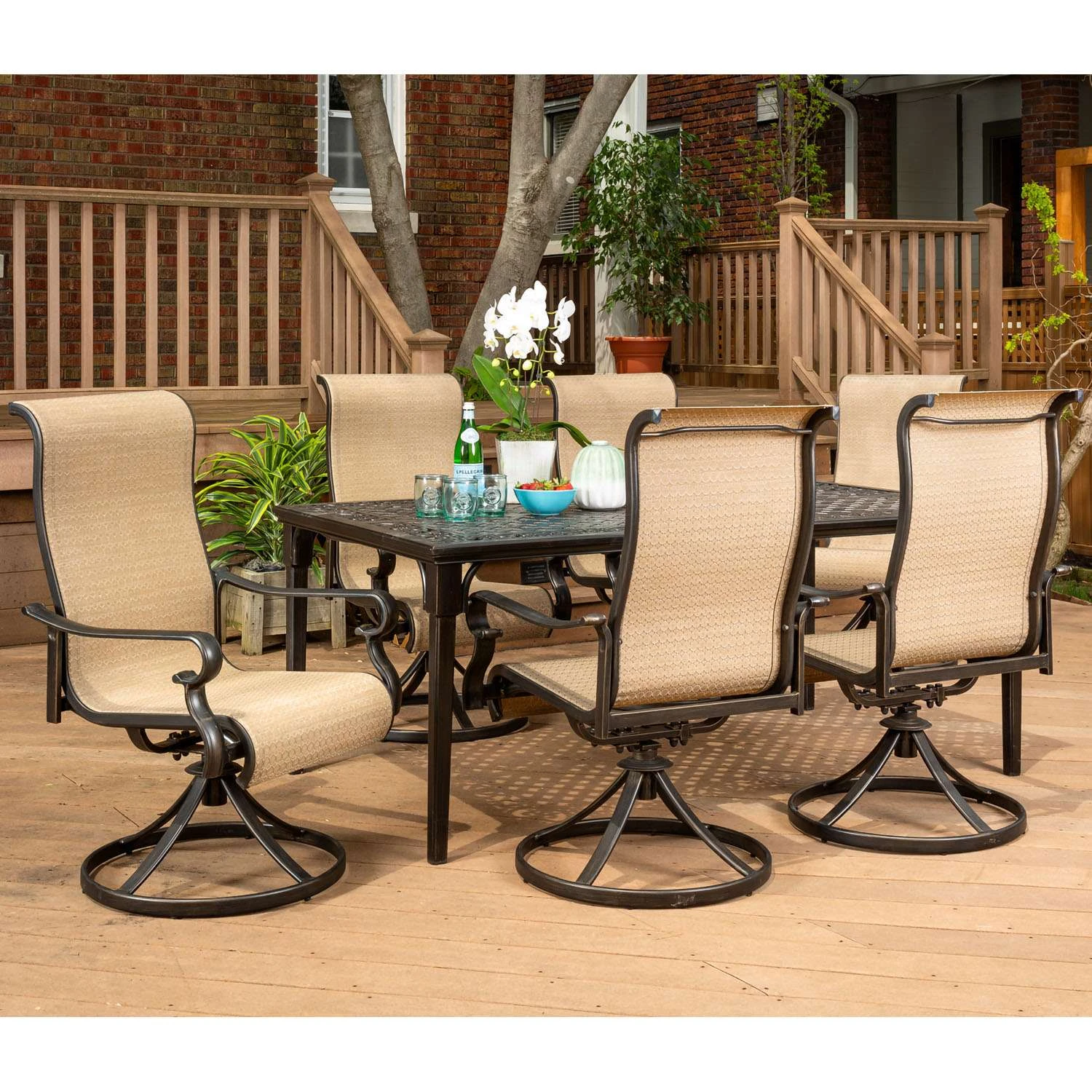 | Search Field | Hanover Brigantine 7 pc Espresso Dining Set Patio Furniture Dining and Seating Sets OUTDOOR FURNITURE SETS ALUMINUM DINING SETS ALMO CORPORATION Hanover 7__rexuom__pc 7__rexuom__piece |