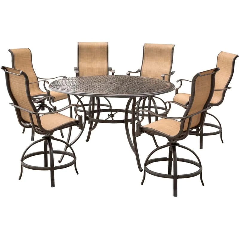 Hanover Manor 7 Pc Bronze Aluminum Transitional High Dining Set