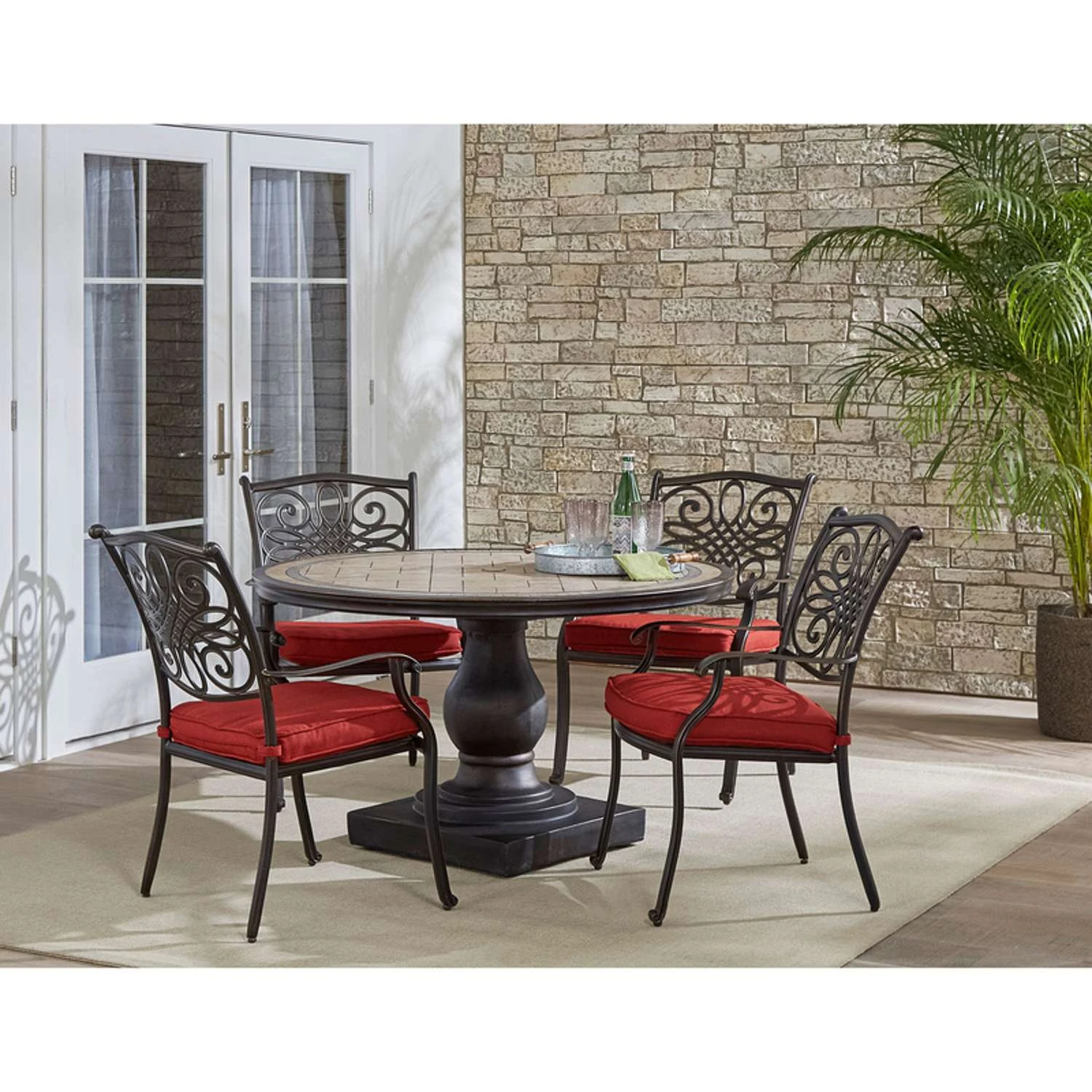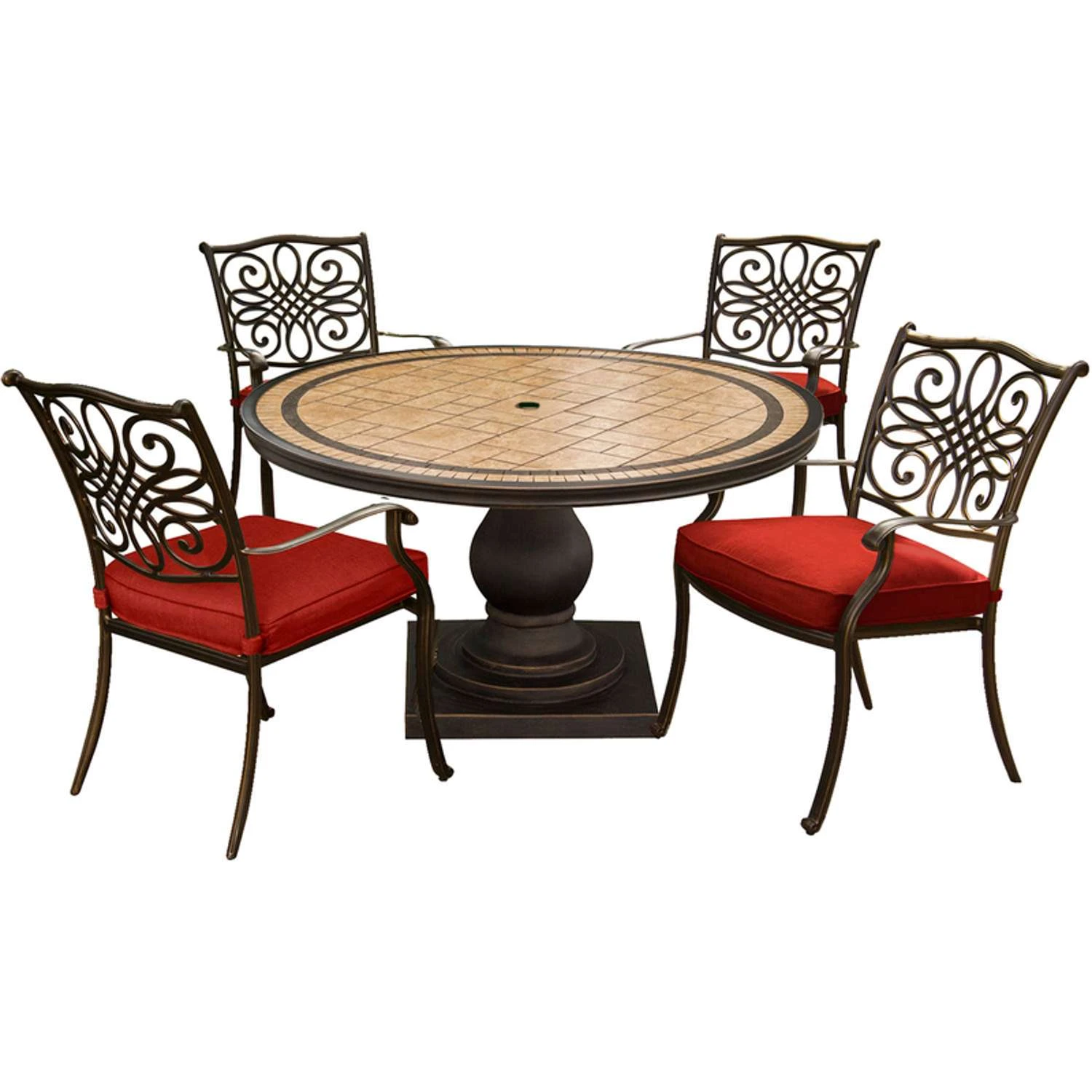 Hanover Monaco 5 Pc Bronze Aluminum Traditional Dining Set Red