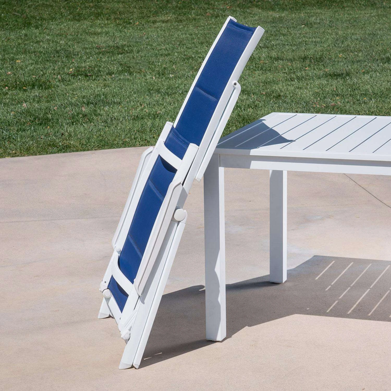 Make your outdoor lounge experience as comfortable as possible with this padded sling chaise from the Regis Collection. Unlike most sling chairs, this model features built-in cushioning stuffed between the durable sling material. This provides additional comfort while you lounge in the sun. Amplify your poolside accommodation by lining multiple chaises the pool. The breathable sling fabric dries quickly when wet and is perfect for drying off after a swim. The slim, aluminum frame adds a modern look to your outdoor setting while an adjustable foot- and backrest allow you to customize your level of comfort. Its collapsible design folds 1/3 of its size, making it extremely compact and portable for storage and transportation. Take outdoor lounging to the next level with the Regis Chaise Collection. Made with all-weather materials that will last year after year Perfect for lounging in the sun or drying off by the pool Folds down flat for compact storage and portability Sling fabric is packed with foam for additional comfort Slim, aluminum frames are naturally rust-resistant Breathable sling fabric dries quickly, resists stains and UV harm Non-skid grips on the base prevent unintentional movement Easy to clean and maintain – simply spot clean as needed