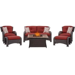| Search Field | Hanover Strathmere 6 pc Espresso Steel Traditional Fire Pit Set Crimson Red Patio Furniture Dining and Seating Sets OUTDOOR FURNITURE SETS WICKER FURNITURE ALMO CORPORATION Hanover 6__rexuom__pc 6__rexuom__piece |