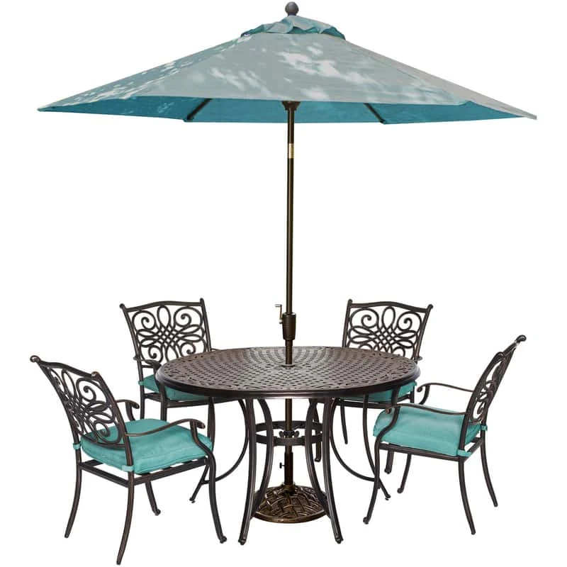 Hanover Traditions 5 Pc Bronze Aluminum Traditional Dining Set Blue