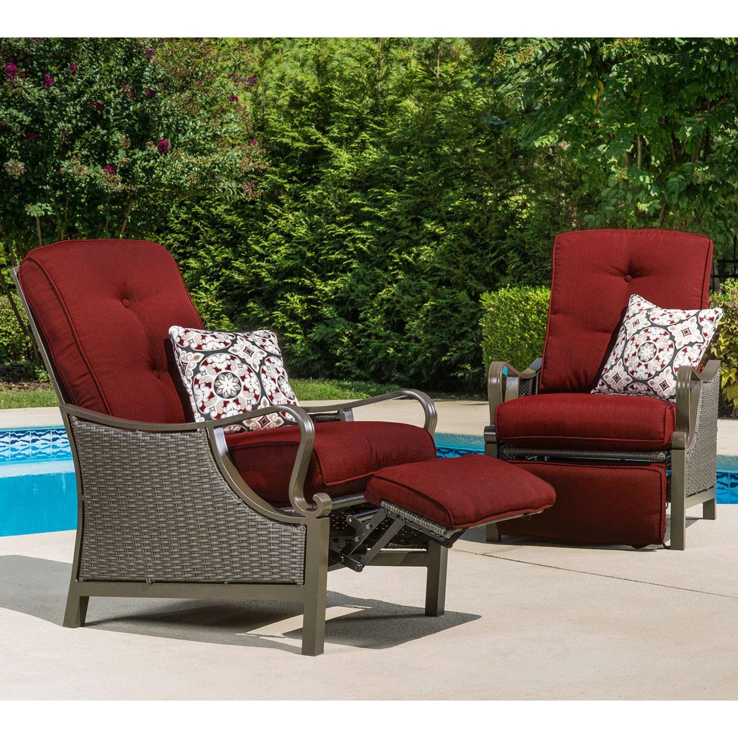 | Search Field | Hanover Ventura Brown Steel Frame Reclining Armchair Crimson Red Patio Furniture Patio Seating OUTDOOR FURNITURE SETS WICKER FURNITURE ALMO CORPORATION Hanover |