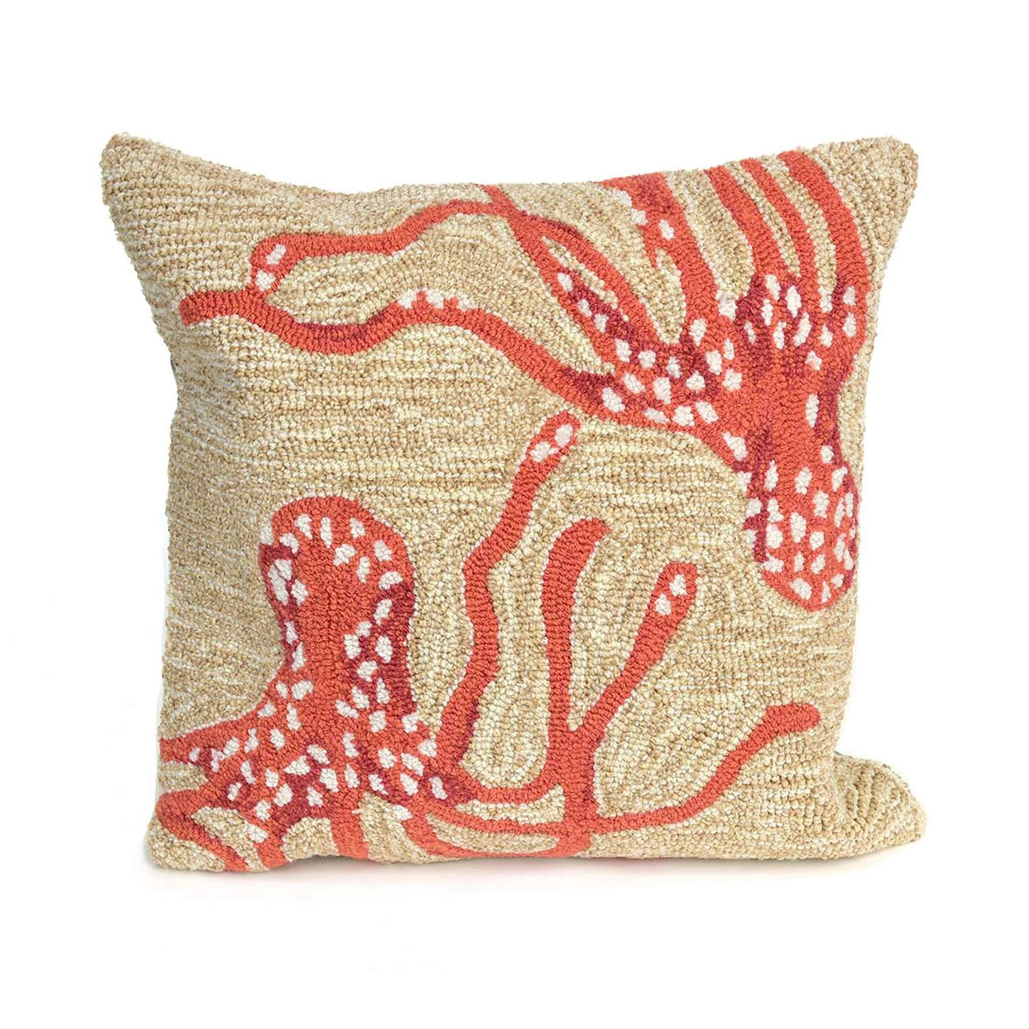 Liora Manne Frontporch Coral Octopus Polyester Throw Pillow 18 In. H X 2 In. W X 18 In. L