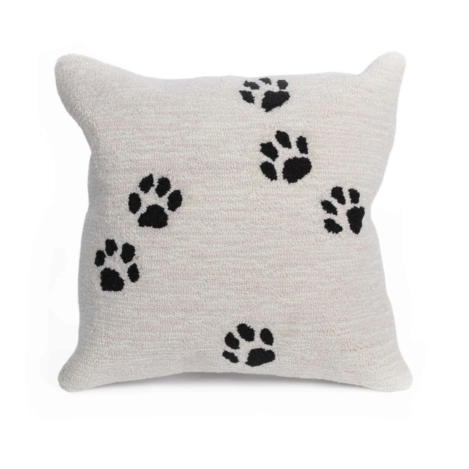 Liora Manne Frontporch White Paw Prints Polyester Throw Pillow 18 In. H X 2 In. W X 18 In. L