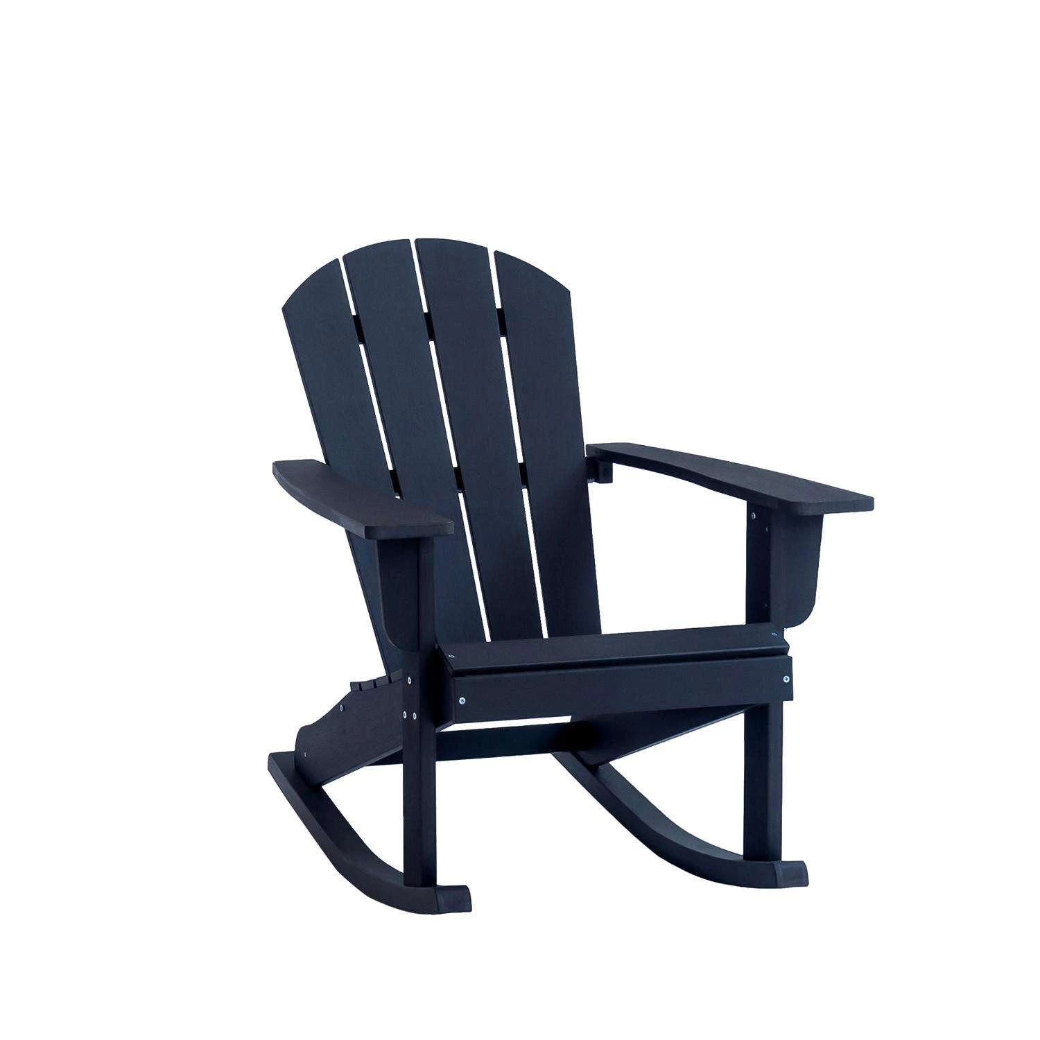 The rocker combines classic style and supreme comfort for a modern twist on a timeless design. Traditional adirondack style with contoured seat Constructed with recycled, faux wood composite Low maintenance, weather resistant and easy to clean