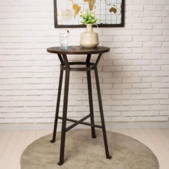 Glitzhome 1 Pc Brown Steel/Wood Farmhouse Bar Table