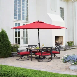 Living Accents Valencia 7 Pc Brown Aluminum Swivel Dining Set Red