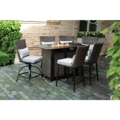 Living Accents Milano 7 Pc Black High Dining Fire Pit Set Gray