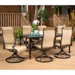 Hanover Brigantine 7 Pc Espresso Bean Aluminum Cast-Top Dining Set
