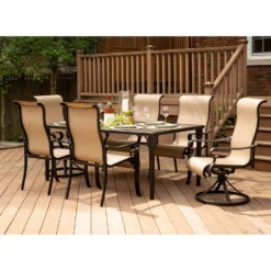 Hanover Brigantine 7 Pc Espresso Aluminum Transitional Dining Set