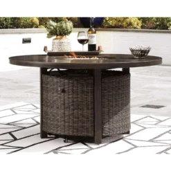 Signature Design By Ashley Paradise Trail Brown Round Aluminum Contemporary Fire Pit Table