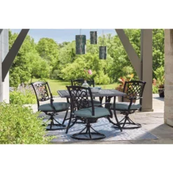Living Accents Hattington 5 Pc Black Steel Swivel Dining Set Peacock Blue