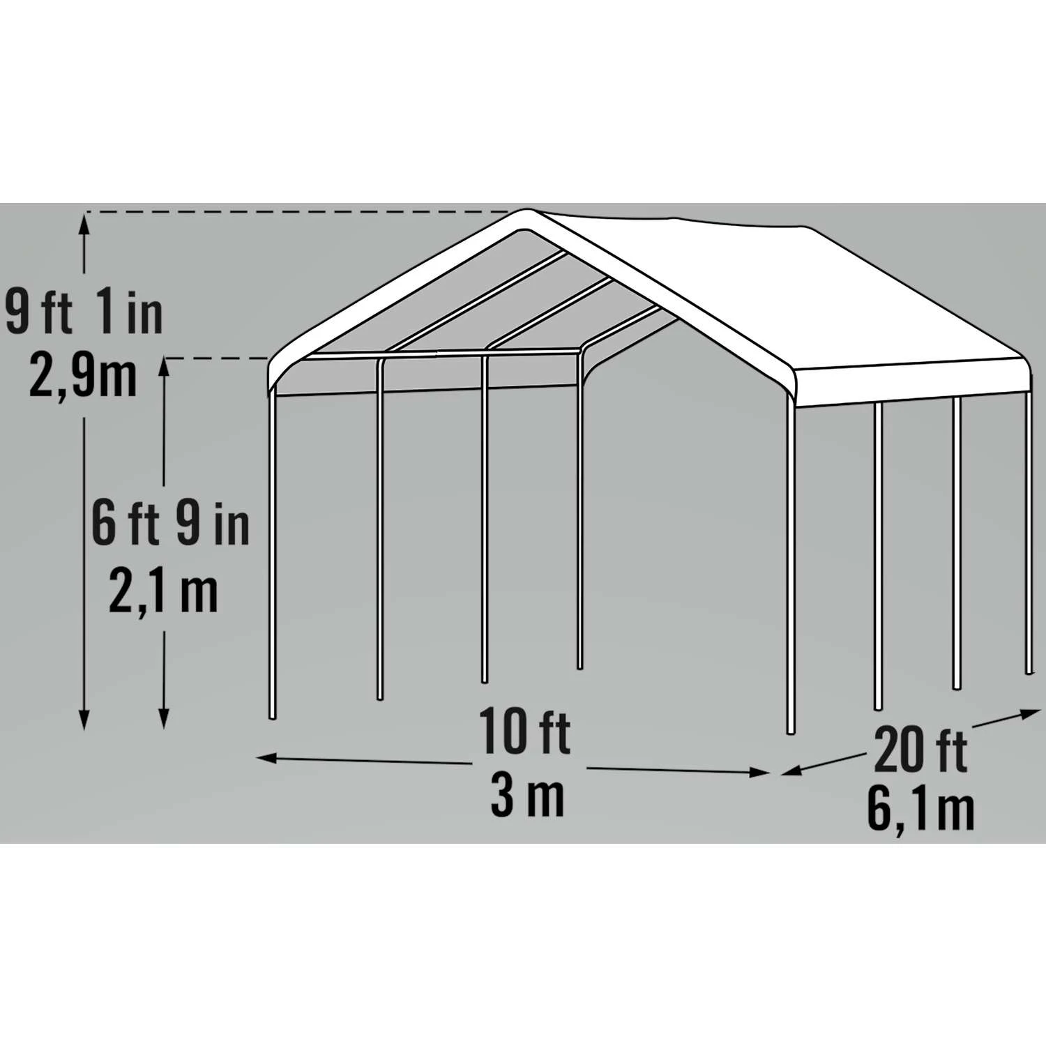 ShelterLogic Super Max Polyethylene Peak Gazebo Canopy 9.5 Ft. H X 10 Ft. W X 20 Ft. L