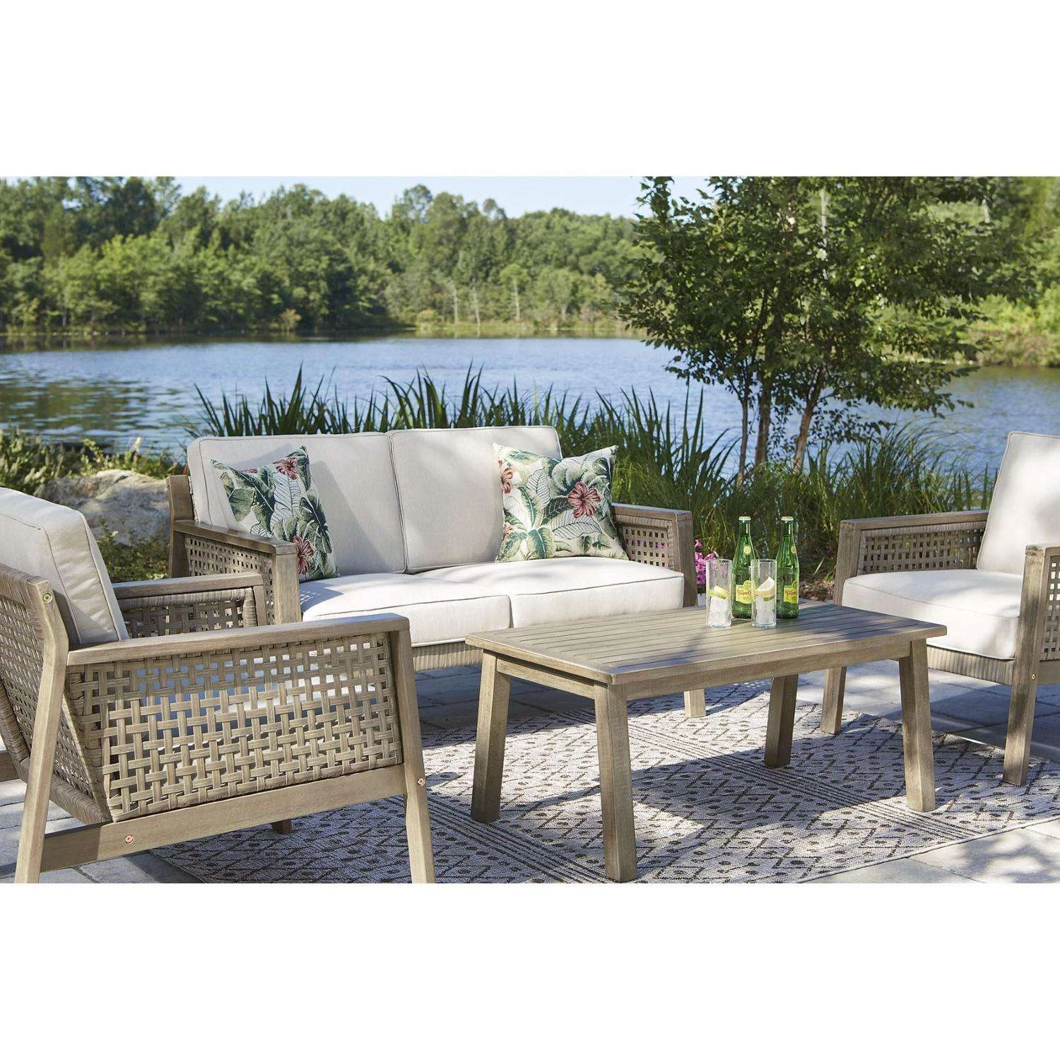 | What's Included | (1) Loveseat, (2) Throw Pillows, (1) Coffee Table, and (2) Lounge Chairs |