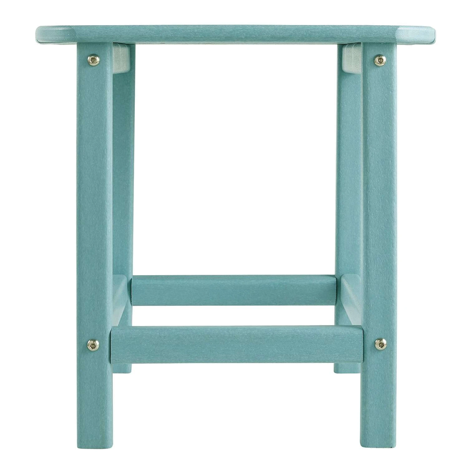 Add cottage-quaint charm to your outdoor oasis with this outdoor end table in turquoise. Made of a hearty hard plastic material with a touch of texture, it’s sure to weather the seasons beautifully. Designed to shed rainwater, the table’s slatted top with gently rounded corners provides exceptional form and function. Made of virgin high-density polyethylene (hard plastic) material Textured grain finish Easy to use